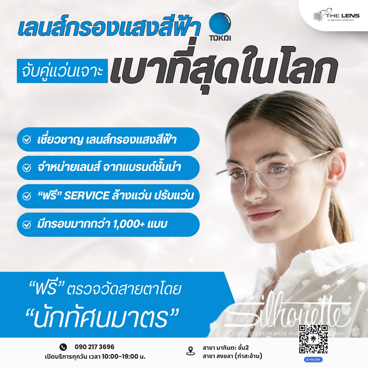 จากลักษณะงานของลูกค้าที่ทำงานหน้าจอคอมพิวเตอร์เป็นประจำ ทางร้านจึงแนะนำเลนส์กรองแสงสีฟ้าแบรนด์ TOKAI จากญี่ปุ่น เลนส์คุณภาพที่สามารถกรองได้ถึง 95% อีกทั้งยังมีการย่อบางเลนส์ ทำให้เลนส์มีน้ำหนักที่เบาลง
